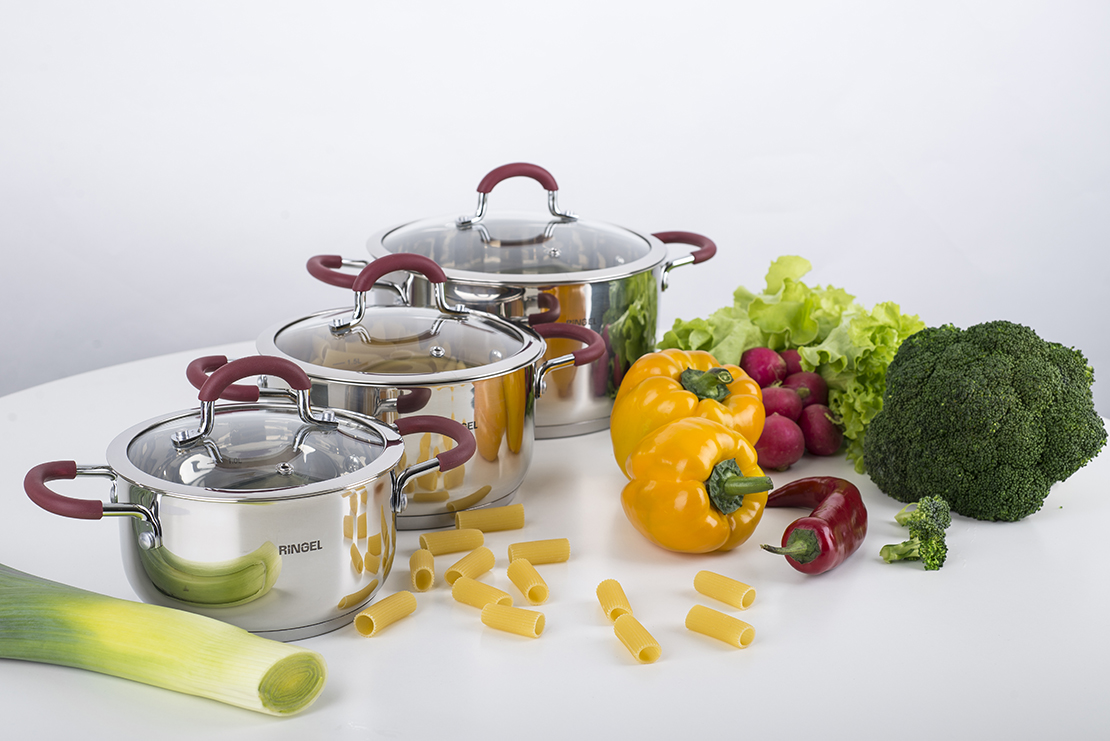 Для безпечного використання каструлі на ручках одягнені силіконові насадки. Не обпалюють і не зісковзують з мокрих рук.